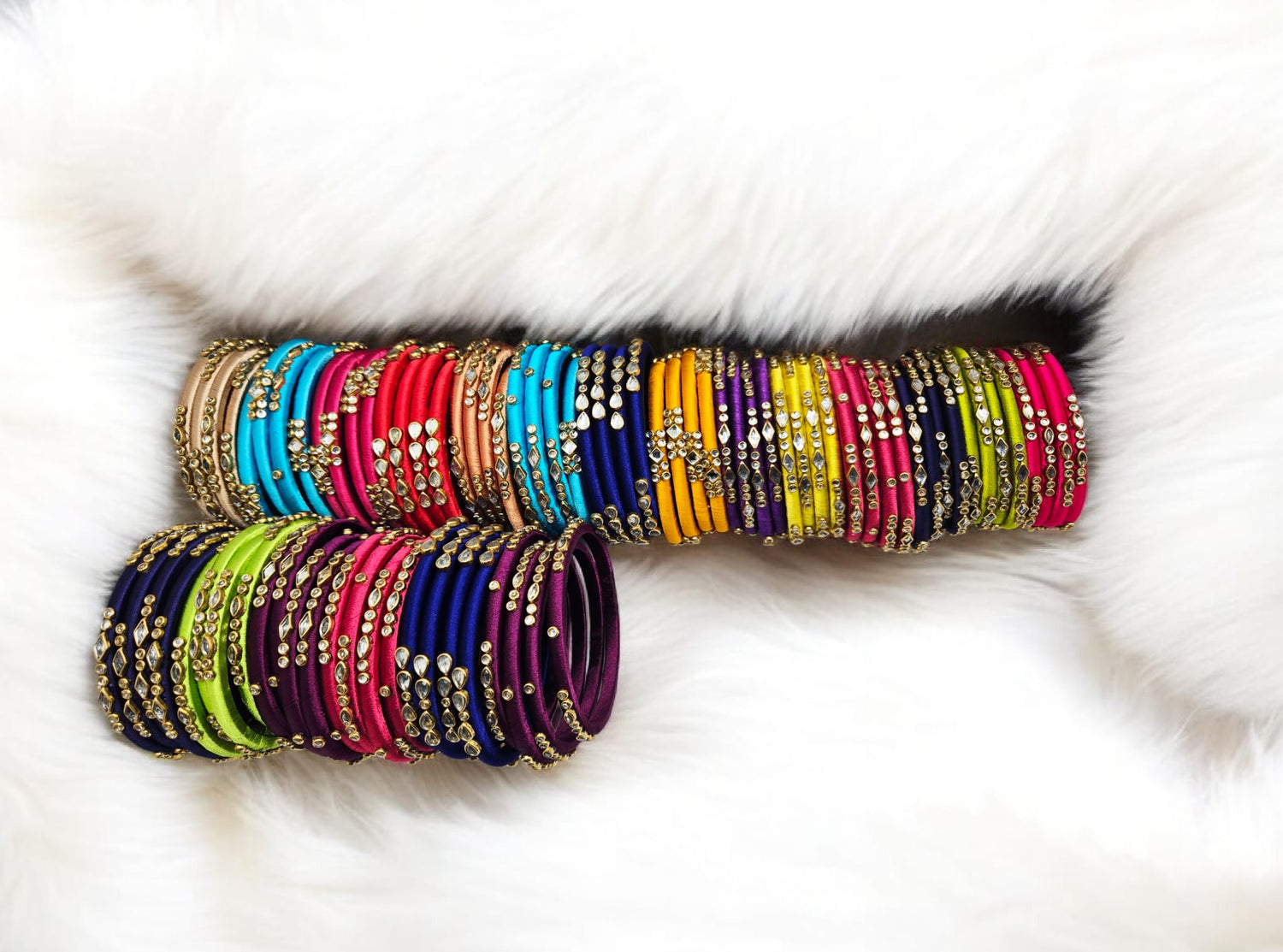 Celebrate timeless beauty with our handcrafted silk thread bangles, lovingly wrapped in vibrant, lustrous threads that echo the richness of Indian tradition. Each bangle is meticulously designed using high-quality silk thread, adorned with delicate embellishments like kundan stones, pearls, and golden accents to add a touch of festive sparkle. Perfect for weddings, festivals, or everyday elegance, these bangles are lightweight, skin-friendly, and available in custom color combinations to match your outfit or occasion. Whether worn solo or stacked for a bold statement, they bring grace, charm, and a handcrafted soul to your jewelry collection.