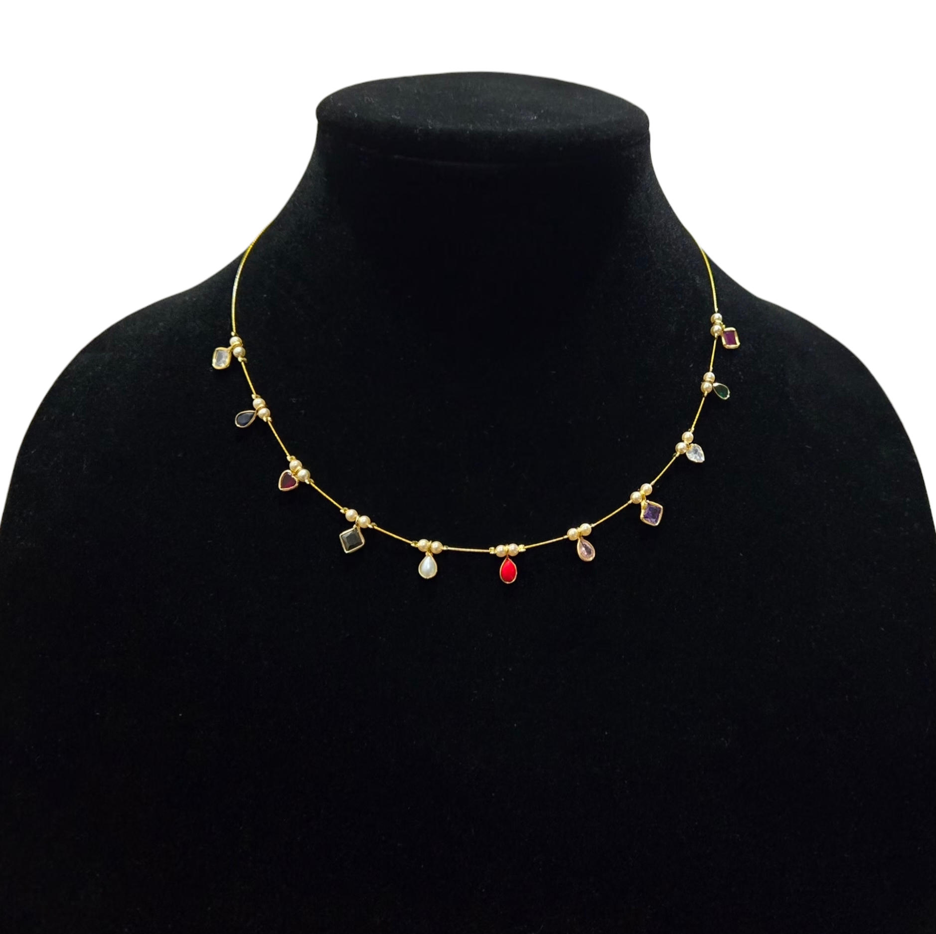 Beautiful navaratna polki necklace is suitable to any attire. Must have one in your collection.